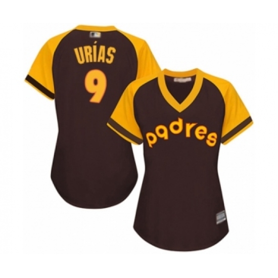 >Women's San Diego Padres #9 Luis Urias Authentic Brown Alternate Cooperstown Cool Base Baseball Player Jersey