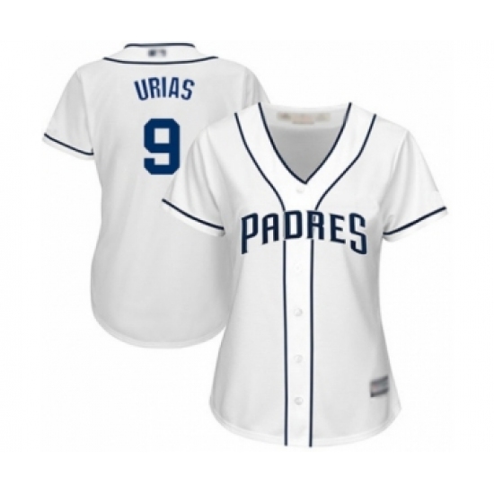 >Women's San Diego Padres #9 Luis Urias Authentic White Home Cool Base Baseball Player Jersey