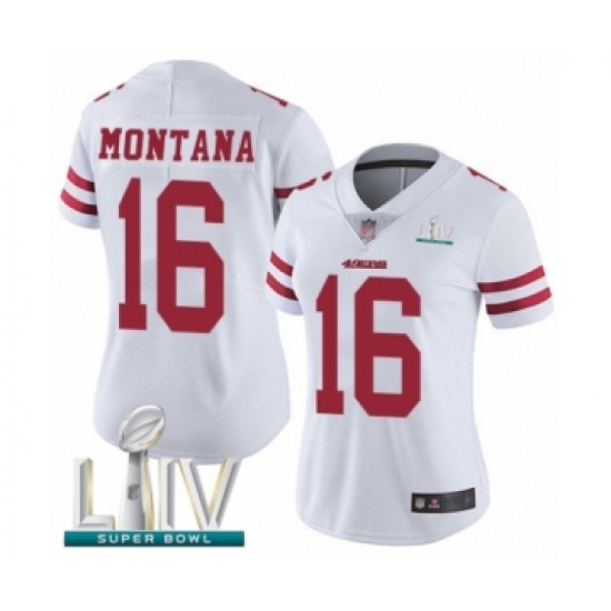 >Women's San Francisco 49ers #16 Joe Montana White Vapor Untouchable Limited Player Super Bowl LIV Bound Football Jersey