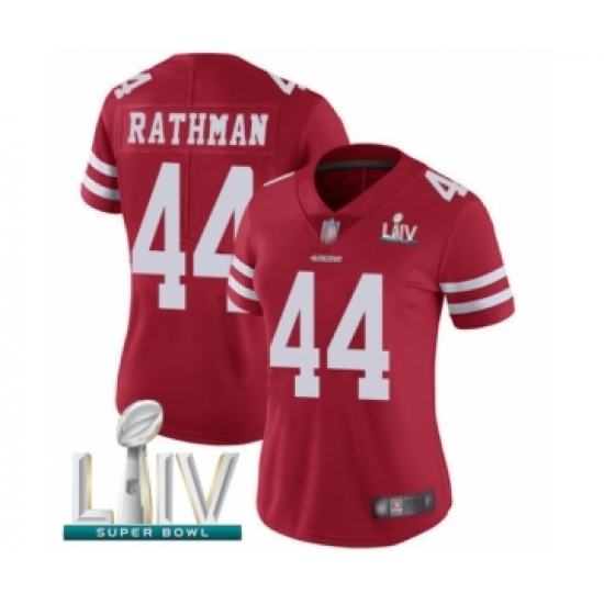 >Women's San Francisco 49ers #44 Tom Rathman Red Team Color Vapor Untouchable Limited Player Super Bowl LIV Bound Football Jersey