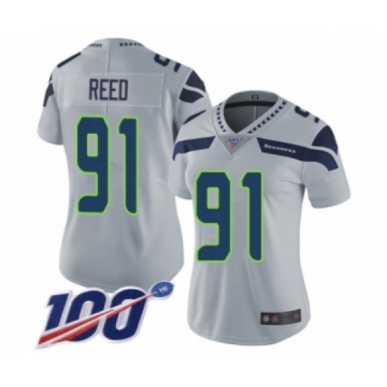 Women's Seattle Seahawks #91 Jarran Reed Grey Alternate Vapor Untouchable Limited Player 100th Season Football Jersey