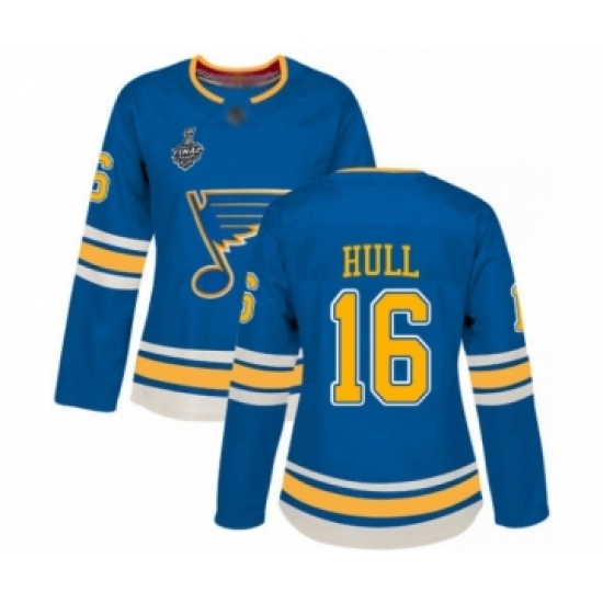 >Women's St. Louis Blues #16 Brett Hull Premier Navy Blue Alternate 2019 Stanley Cup Final Bound Hockey Jersey