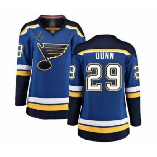 >Women's St. Louis Blues #29 Vince Dunn Fanatics Branded Royal Blue Home Breakaway 2019 Stanley Cup Final Bound Hockey Jersey