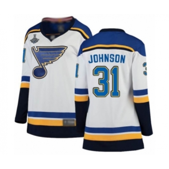 Women's St. Louis Blues #31 Chad Johnson Fanatics Branded White Away Breakaway 2019 Stanley Cup Champions Hockey Jersey