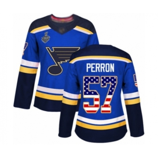 Women's St. Louis Blues #57 David Perron Authentic Blue USA Flag Fashion 2019 Stanley Cup Final Bound Hockey Jersey