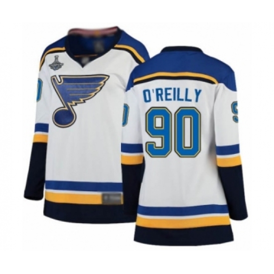 Women's St. Louis Blues #90 Ryan O'Reilly Authentic White Away 2019 Stanley Cup Champions Hockey Jersey