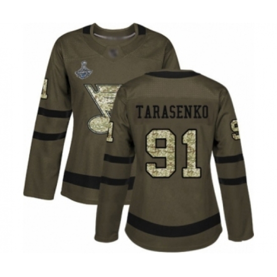 Women's St. Louis Blues #91 Vladimir Tarasenko Authentic Green Salute to Service 2019 Stanley Cup Champions Hockey Jersey