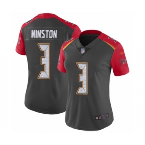 >Women's Tampa Bay Buccaneers #3 Jameis Winston Limited Gray Inverted Legend Football Jersey