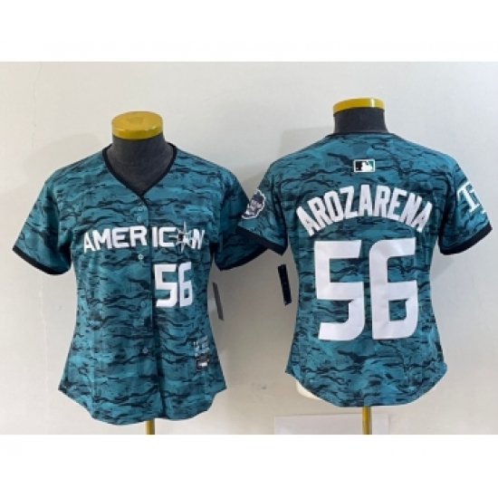 >Women's Tampa Bay Rays #56 Randy Arozarena Number Teal 2023 All Star Cool Base Stitched Jersey