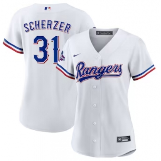 Women's Texas Rangers #31 Max Scherzer Nike White Home 2023 World Series Champions Replica Player Jersey