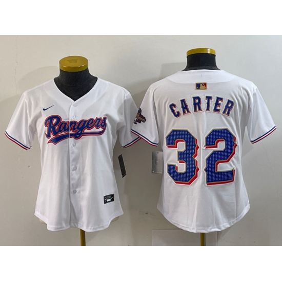 Women's Texas Rangers #32 Evan Carter Number White 2024 Gold Collection Limited Cool Base Jerseys