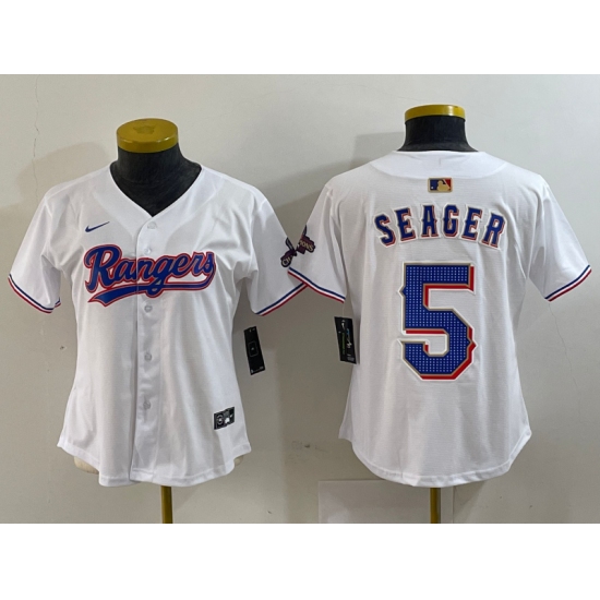 Women's Texas Rangers #5 Corey Seager White 2023 World Series Stitched Baseball Jersey
