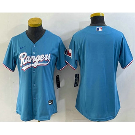 Women's Texas Rangers Blank Number Light Blue Team Logo Cool Base Jersey