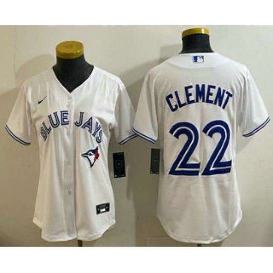 >Women's Toronto Blue Jays #22 Ernie Clement White Cool Base Jersey