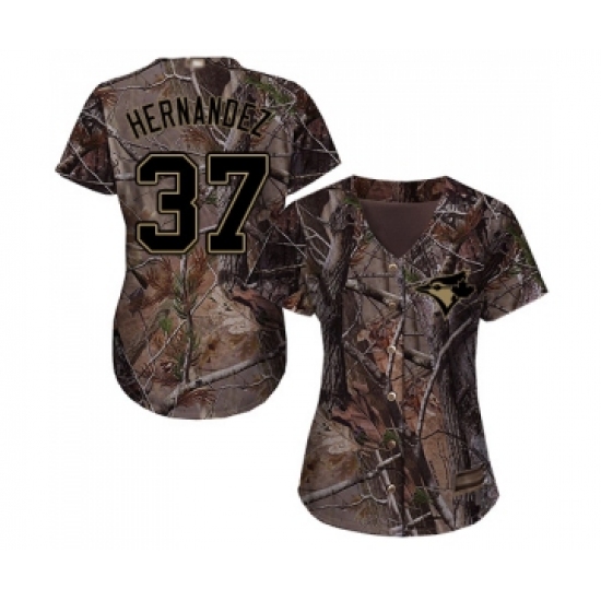 >Women's Toronto Blue Jays #37 Teoscar Hernandez Authentic Camo Realtree Collection Flex Base Baseball Jersey