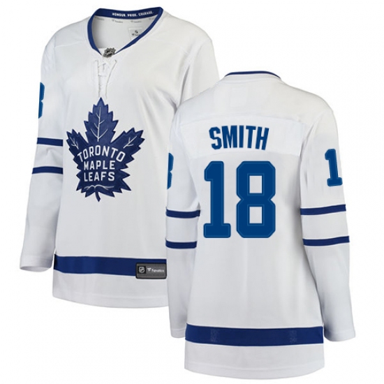 Home>NHL>Toronto Maple Leafs>Ben Smith>Women's Toronto Maple Leafs #18 Ben Smith Authentic White Away Fanatics Branded Breakaway NHL Jersey