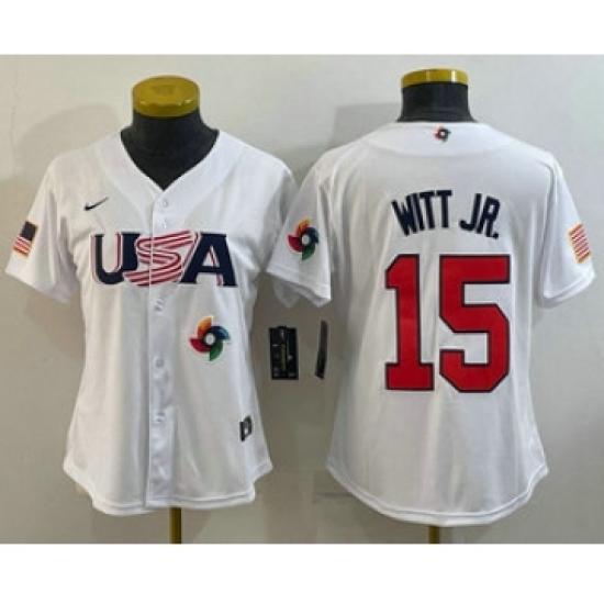 Women's USA Baseball #15 Bobby Witt Jr 2023 White World Classic Replica Stitched Jersey