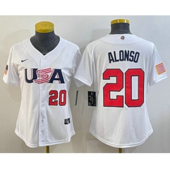 Women's USA Baseball #20 Pete Alonso Number 2023 White World Classic Stitched Jersey