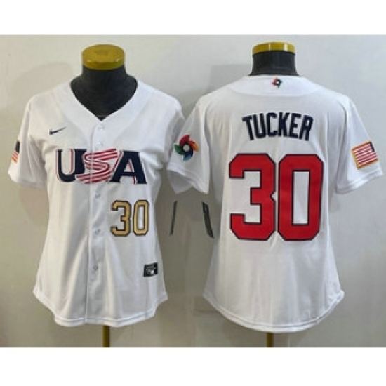 >Womens USA Baseball #30 Kyle Tucker Number 2023 White World Classic Stitched Jersey