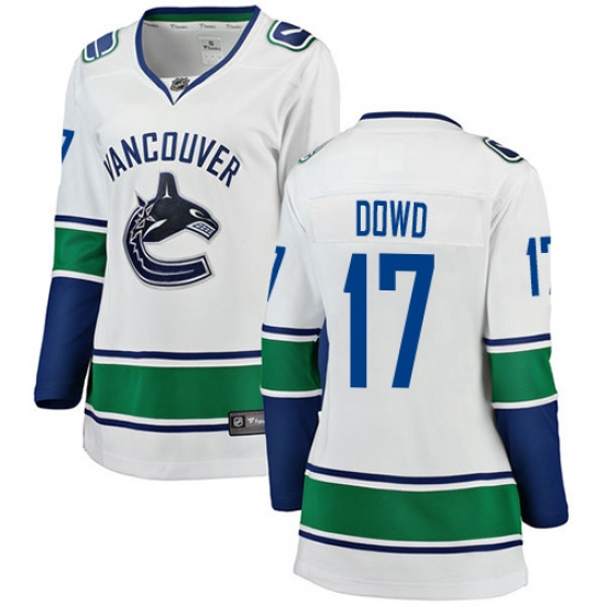 >Women's Vancouver Canucks #17 Nic Dowd Fanatics Branded White Away Breakaway NHL Jerse