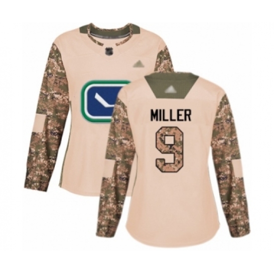 >Women's Vancouver Canucks #9 J.T. Miller Authentic Camo Veterans Day Practice Hockey Jersey