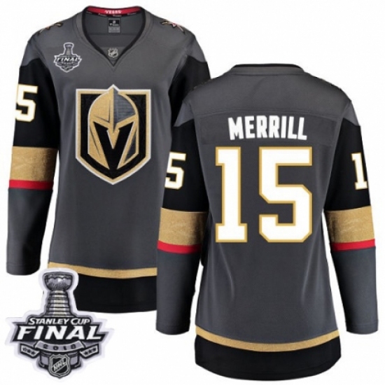 >Women's Vegas Golden Knights #15 Jon Merrill Authentic Black Home Fanatics Branded Breakaway 2018 Stanley Cup Final NHL Jersey