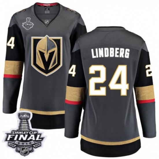Women's Vegas Golden Knights #24 Oscar Lindberg Authentic Black Home Fanatics Branded Breakaway 2018 Stanley Cup Final NHL Jersey