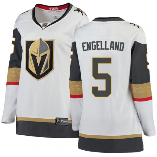 >Women's Vegas Golden Knights #5 Deryk Engelland Authentic White Away Fanatics Branded Breakaway NHL Jersey