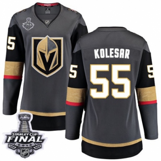 >Women's Vegas Golden Knights #55 Keegan Kolesar Authentic Black Home Fanatics Branded Breakaway 2018 Stanley Cup Final NHL Jersey