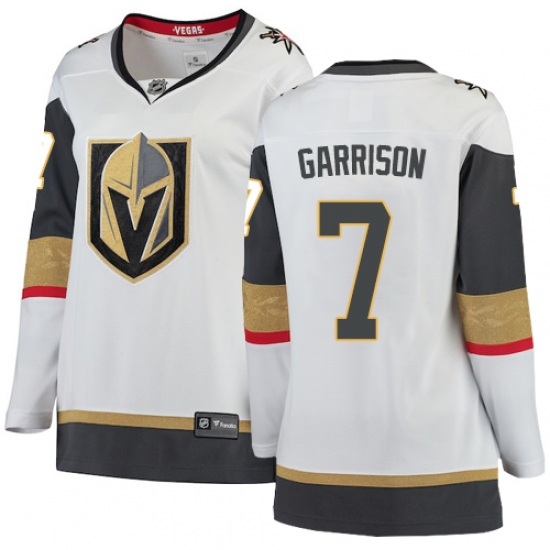 >Women's Vegas Golden Knights #7 Jason Garrison Authentic White Away Fanatics Branded Breakaway NHL Jersey
