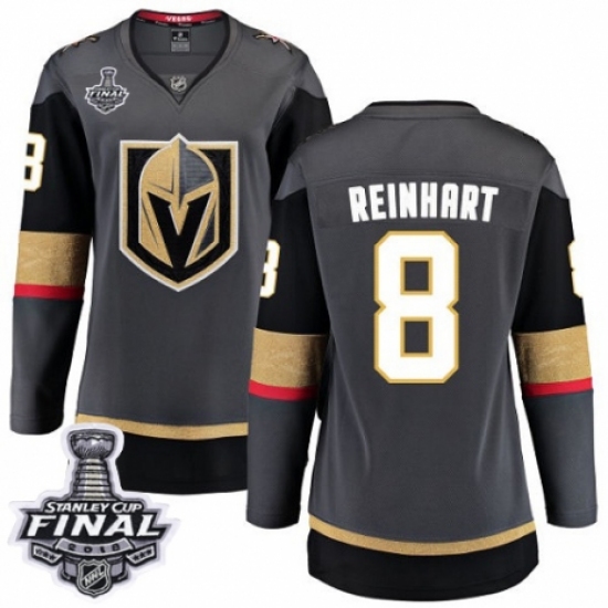 >Women's Vegas Golden Knights #8 Griffin Reinhart Authentic Black Home Fanatics Branded Breakaway 2018 Stanley Cup Final NHL Jersey