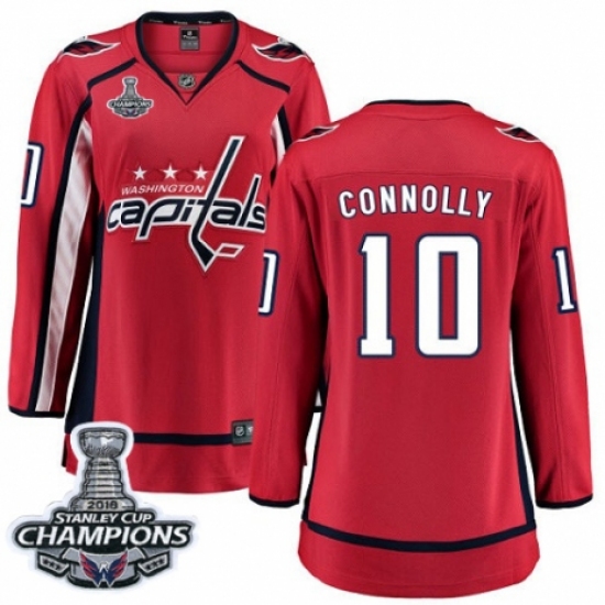 >Women's Washington Capitals #10 Brett Connolly Fanatics Branded Red Home Breakaway 2018 Stanley Cup Final Champions NHL Jersey