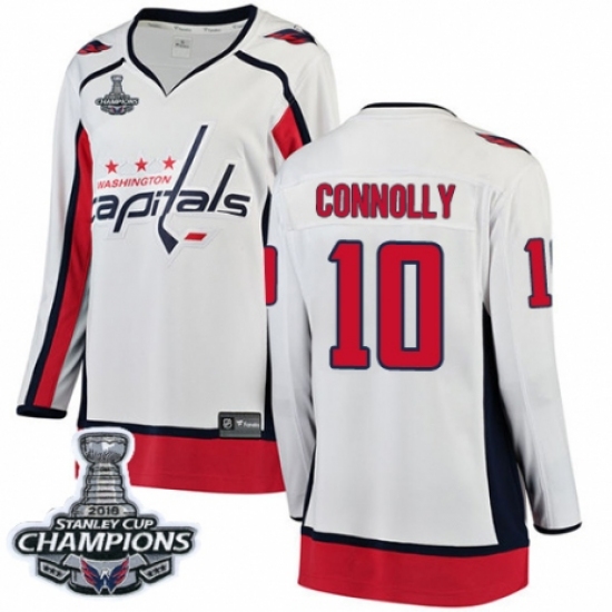 >Women's Washington Capitals #10 Brett Connolly Fanatics Branded White Away Breakaway 2018 Stanley Cup Final Champions NHL Jersey
