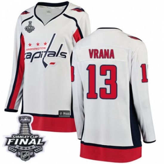Women's Washington Capitals #13 Jakub Vrana Fanatics Branded White Away Breakaway 2018 Stanley Cup Final NHL Jersey