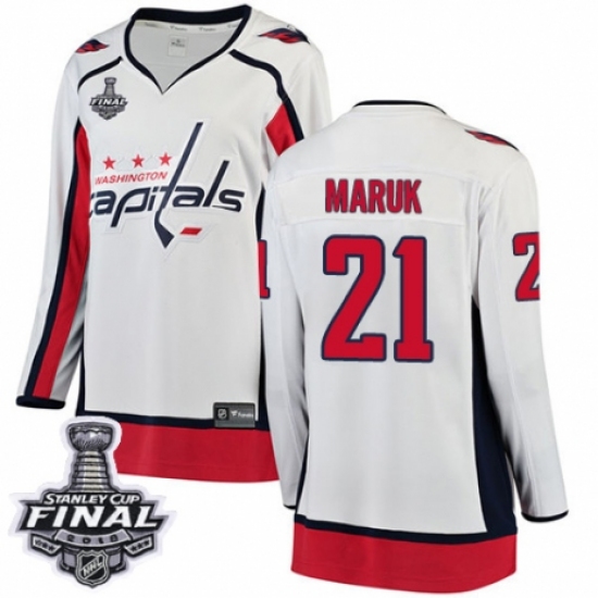 Women's Washington Capitals #21 Dennis Maruk Fanatics Branded White Away Breakaway 2018 Stanley Cup Final NHL Jersey