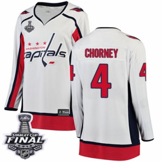 Women's Washington Capitals #4 Taylor Chorney Fanatics Branded White Away Breakaway 2018 Stanley Cup Final NHL Jersey