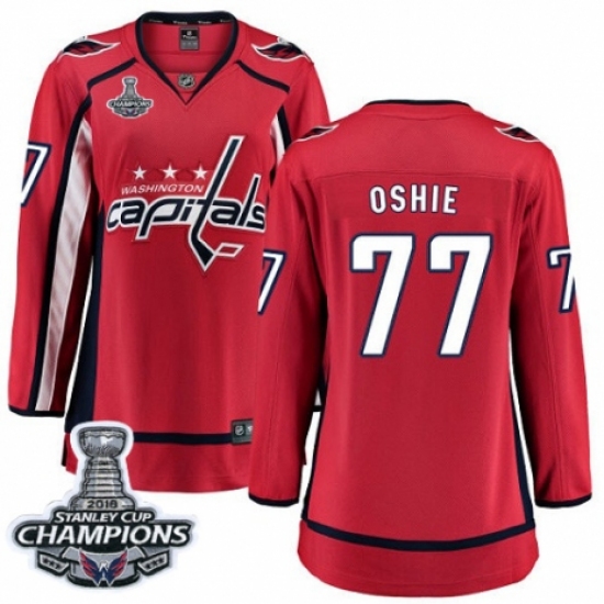 Women's Washington Capitals #77 T.J. Oshie Fanatics Branded Red Home Breakaway 2018 Stanley Cup Final Champions NHL Jersey