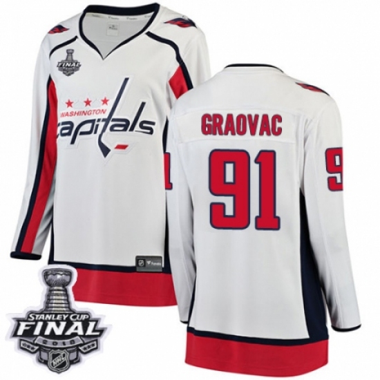Women's Washington Capitals #91 Tyler Graovac Fanatics Branded White Away Breakaway 2018 Stanley Cup Final NHL Jersey