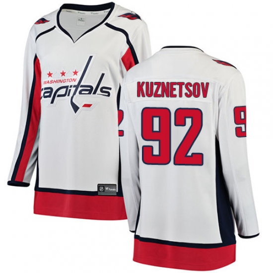 Home>NHL>Washington Capitals>Evgeny Kuznetsov>Women's Washington Capitals #92 Evgeny Kuznetsov Fanatics Branded White Away Breakaway NHL Jersey