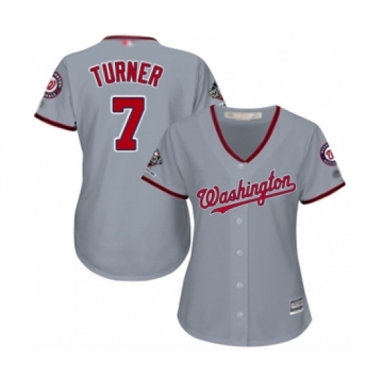 Women's Washington Nationals #7 Trea Turner Authentic Grey Road Cool Base 2019 World Series Champions Baseball Jersey