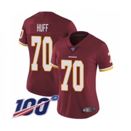 >Women's Washington Redskins #70 Sam Huff Burgundy Red Team Color Vapor Untouchable Limited Player 100th Season Football Jersey