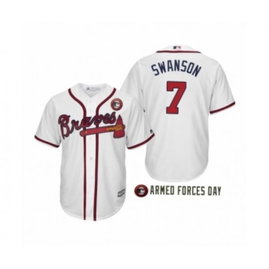 >Youth 2019 Armed Forces Day Dansby Swanson #7 Atlanta Braves White Jersey