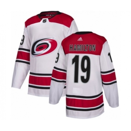 >Youth Adidas Carolina Hurricanes #19 Dougie Hamilton Authentic White Away NHL Jersey