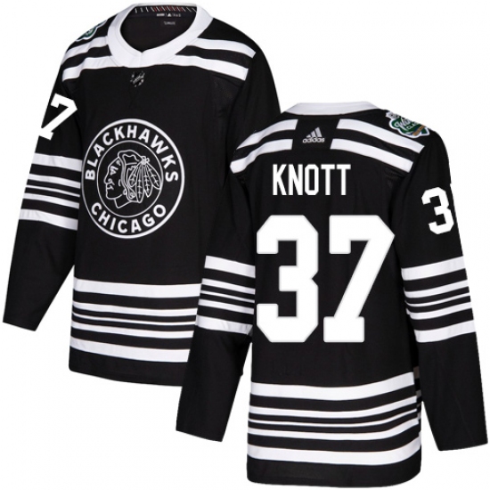 >Youth Adidas Chicago Blackhawks #37 Graham Knott Authentic Black 2019 Winter Classic NHL Jersey