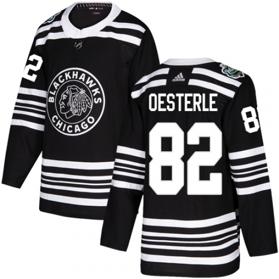 >Youth Adidas Chicago Blackhawks #82 Jordan Oesterle Authentic Black 2019 Winter Classic NHL Jersey