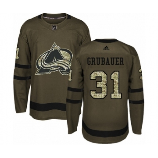 >Youth Adidas Colorado Avalanche #31 Philipp Grubauer Premier Green Salute to Service NHL Jersey