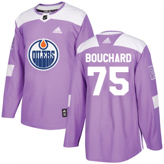 >Youth Adidas Edmonton Oilers #75 Evan Bouchard Authentic Purple Fights Cancer Practice NHL Jersey