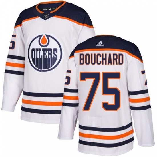 >Youth Adidas Edmonton Oilers #75 Evan Bouchard Authentic White Away NHL Jersey