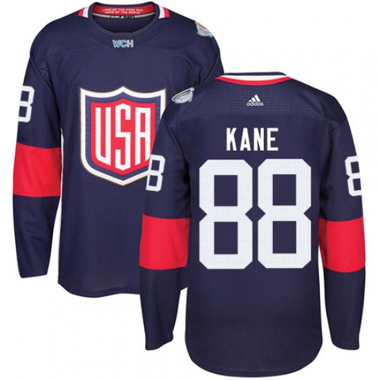 Youth Adidas Team USA #88 Patrick Kane Authentic Navy Blue Away 2016 World Cup Ice Hockey Jersey