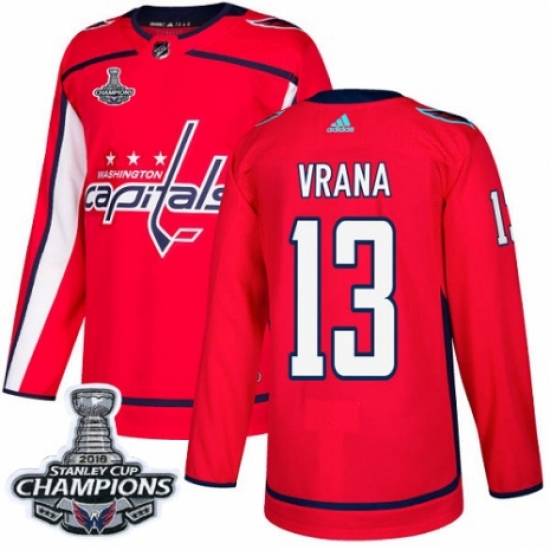 Youth Adidas Washington Capitals #13 Jakub Vrana Authentic Red Home 2018 Stanley Cup Final Champions NHL Jersey